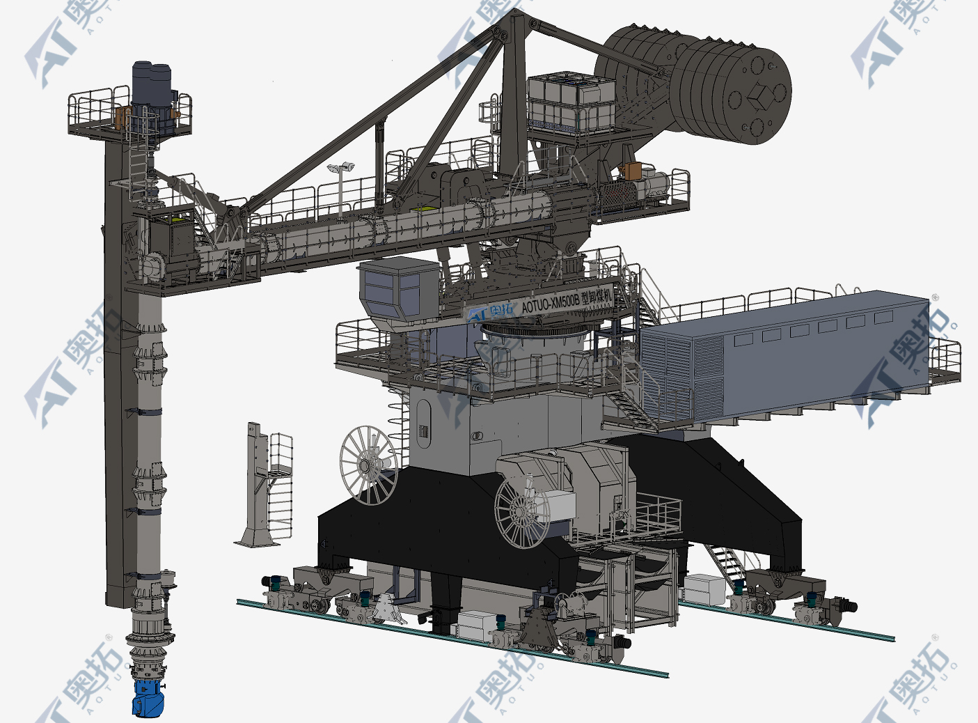 奧拓股份首臺環保型螺旋卸煤機的規格為軌道移動式AOTUO-XM500B型。實驗數據顯示,該規格卸煤機重載實際產量達到700t/h,峰值產量已超過1000t/h,通過煤粒徑為≦300mm,含水率≦17%,耐磨性能好,作業過程中幾乎無粉塵溢出。這說明,AOTUO螺旋卸煤機具有環保型、產量高、耐磨性能好、適應大塊粒徑等顯著的技術優點。AOTUO環保型卸煤機適用于接卸800噸 ~ 76000噸船舶。