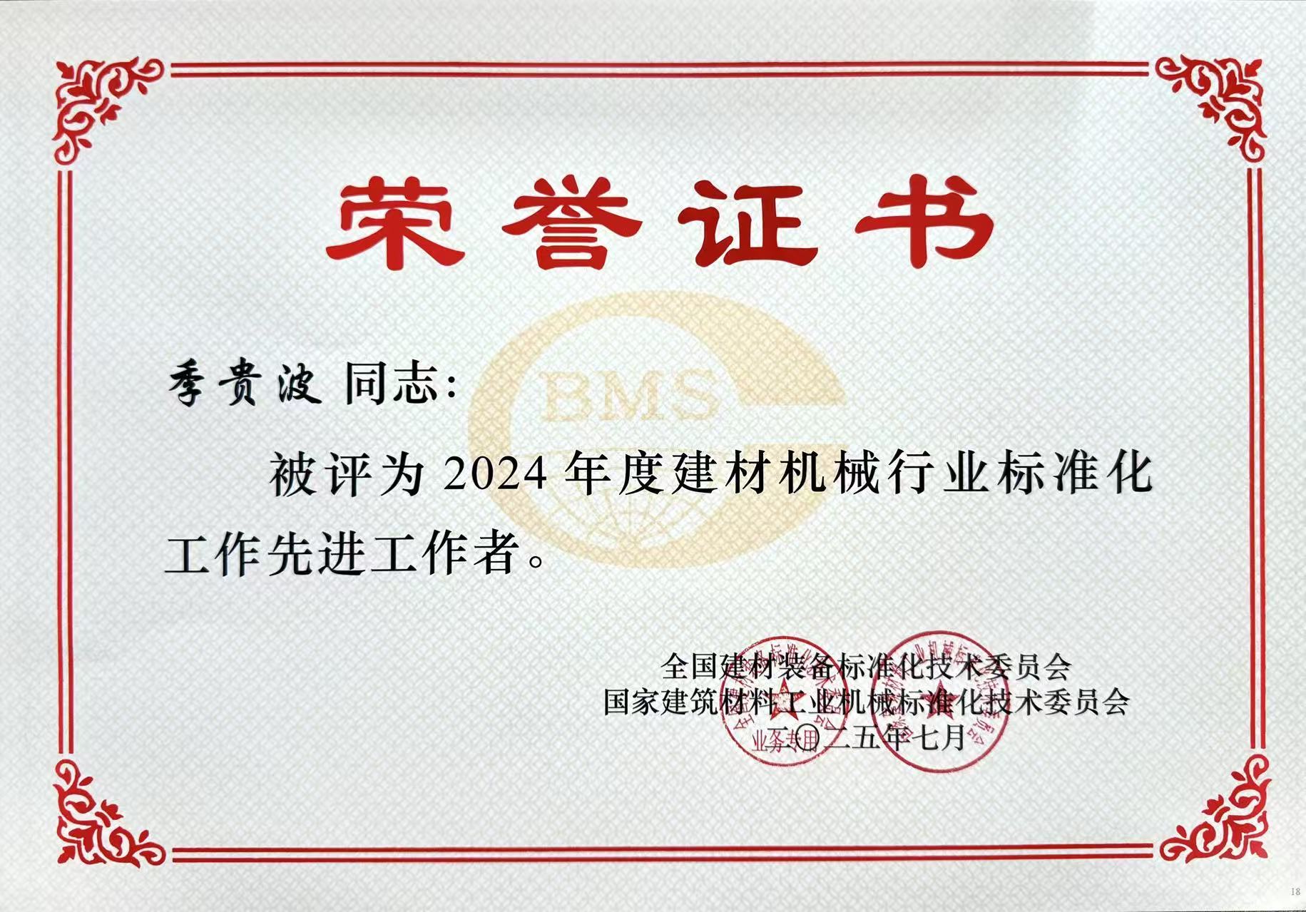 其中,奧拓股份董事長季貴波、研究院科研管理室主任周英強(qiáng)獲得“2024年度建材機(jī)械行業(yè)標(biāo)準(zhǔn)化工作先進(jìn)工作者”表彰。