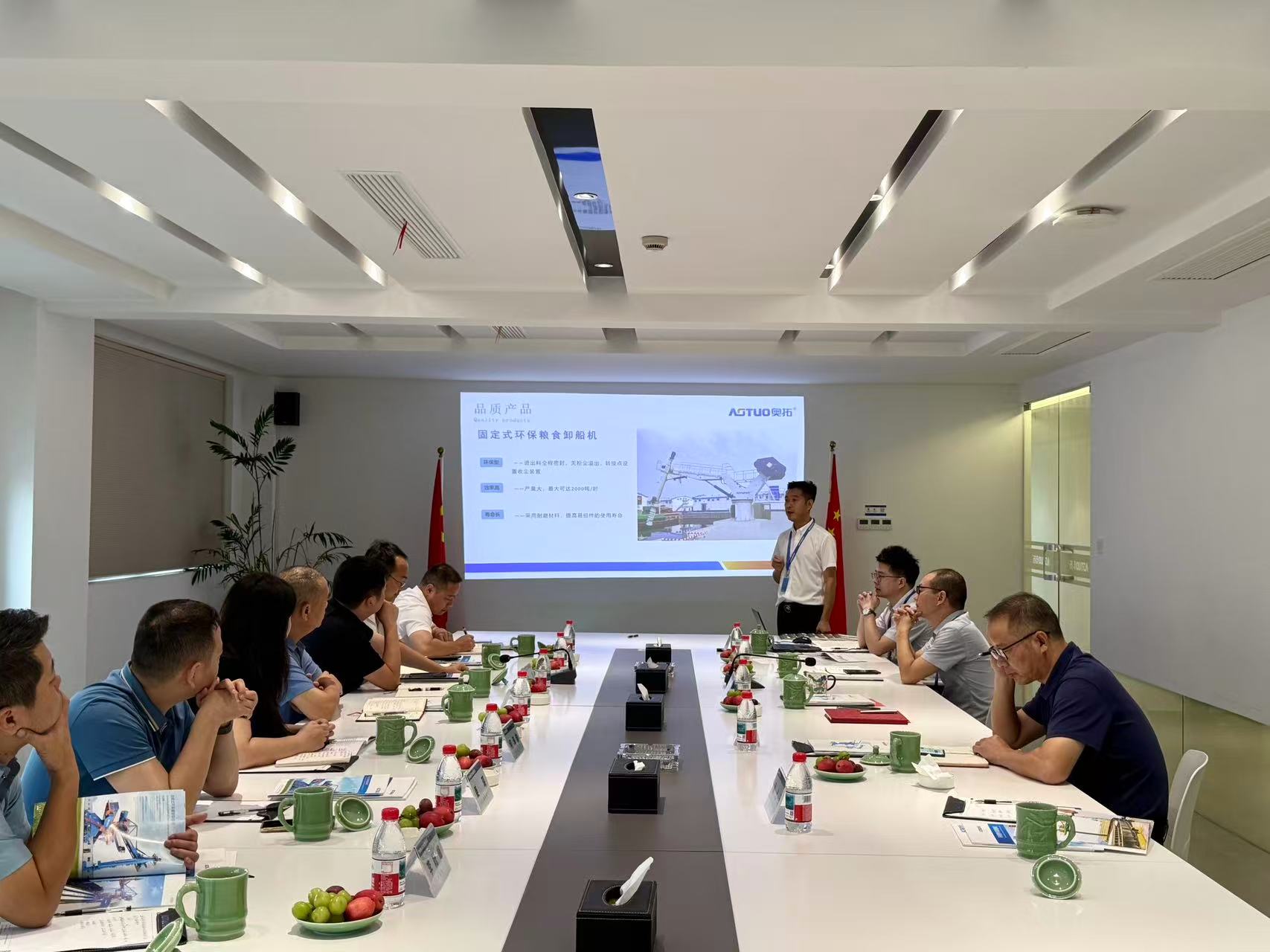 Recently, Yang Libin, member of the Party Committee and Deputy General Manager of Guizhou Port and Shipping Group, led a delegation for an in-depth inspection and technical exchange. Jigui Bo, Chairman and President of AOTUO, along with the core technical team, hosted the delegation throughout the visit. The two parties engaged in extensive discussions on topics such as bulk cargo handling equipment, processes, port digitalization, and smart logistics solutions.