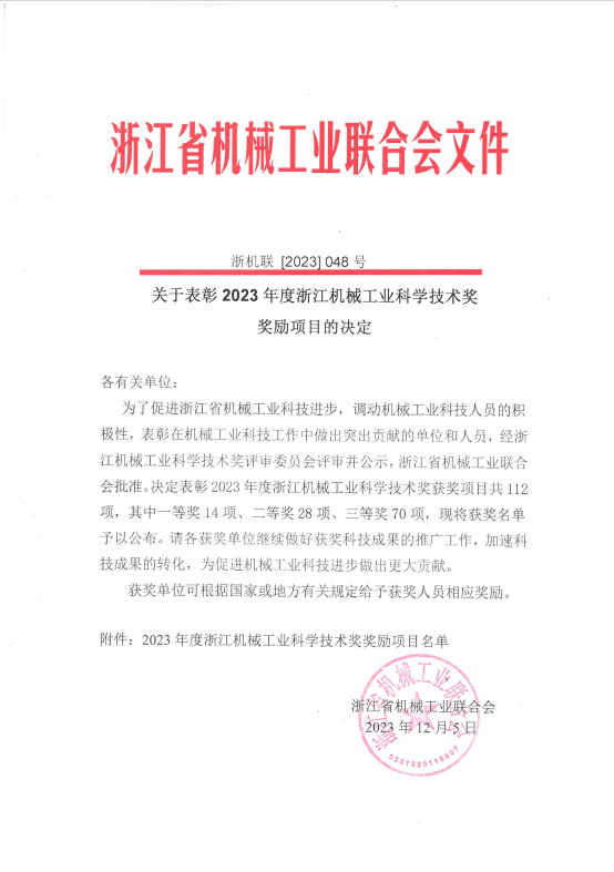 12月5日上午,浙江省機(jī)械工業(yè)聯(lián)合會(huì)發(fā)布《關(guān)于表彰2023年度機(jī)械工業(yè)科學(xué)技術(shù)獎(jiǎng)獎(jiǎng)勵(lì)項(xiàng)目的決定》。AOTUO奧拓股份自主研發(fā)的“熟料卸船機(jī)”榮獲浙江機(jī)械工業(yè)科學(xué)技術(shù)二等獎(jiǎng)!本次受表彰的2023年度浙江...