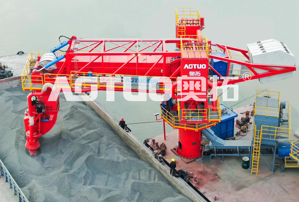 ATSL型熟料卸船機是AOTUO奧拓股份19年技術積淀,匠心潛研的成果,結構合理,科學高效,為國際首創。取料口螺旋機葉片表面采用專有工藝技術集成“金剛級”耐磨性能,可超3000H的耐磨壽命。該型設備也可接卸粒徑≤100mm砂石料。